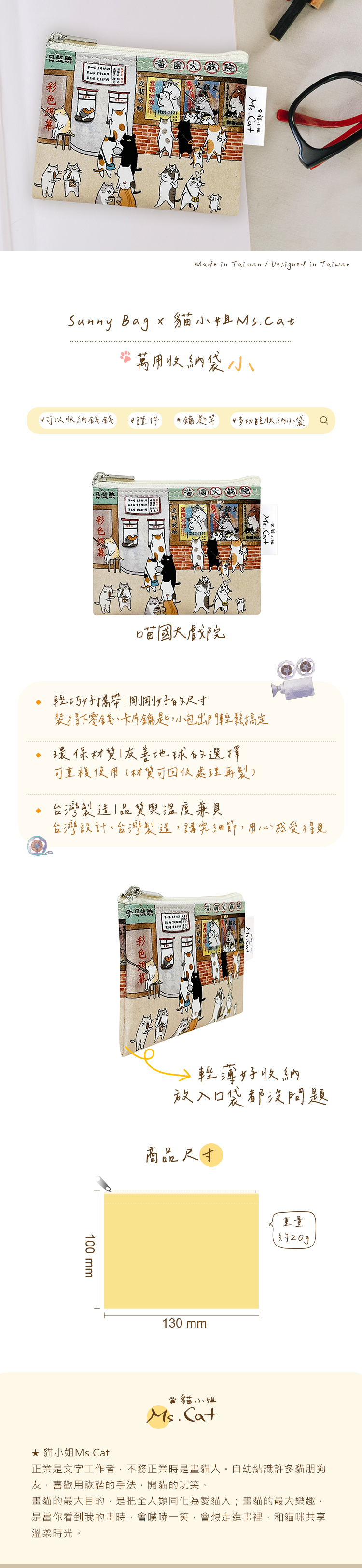 Sunny Bag x 貓小姐Ms.Cat-萬用收納袋(S)-喵國大戲院