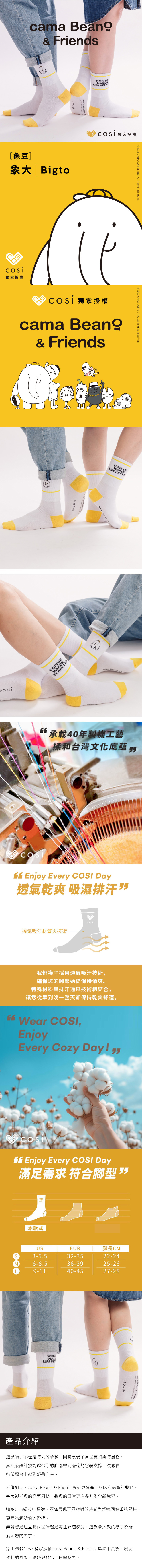 COSI - 獨家授權CAMA BEANO & FRIENDS 螺紋中長襪 象大款 MIT臺灣製襪子
