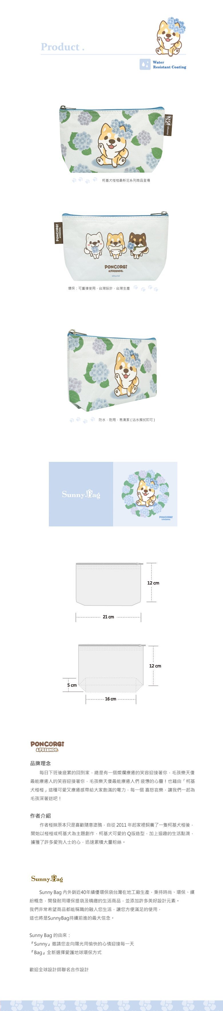 Sunny Bag x 柯基犬椪椪 多功能棉布文具袋/化妝包-繡球花柴柴款