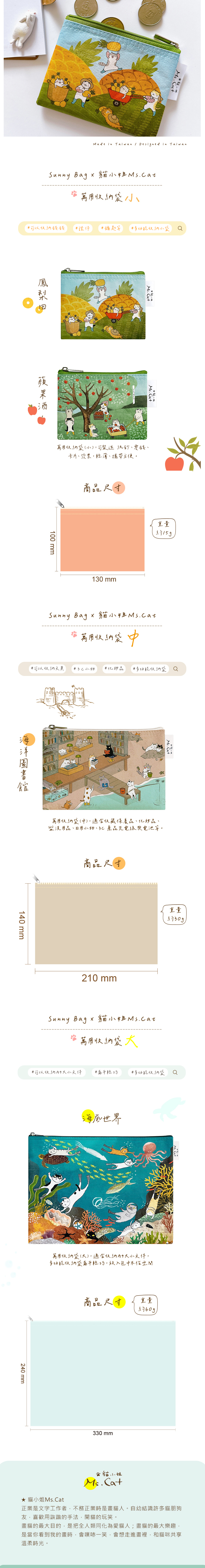 萬用收納袋(小)尺寸:13x10 cm材質:棉布+OPP重量:約15g產地:台灣萬用收納袋(中)尺寸:21x14 cm材質:棉布+OPP重量:約30g產地:台灣萬用收納袋(大)尺寸:33x24 cm材質:棉布+OPP重量:約60g