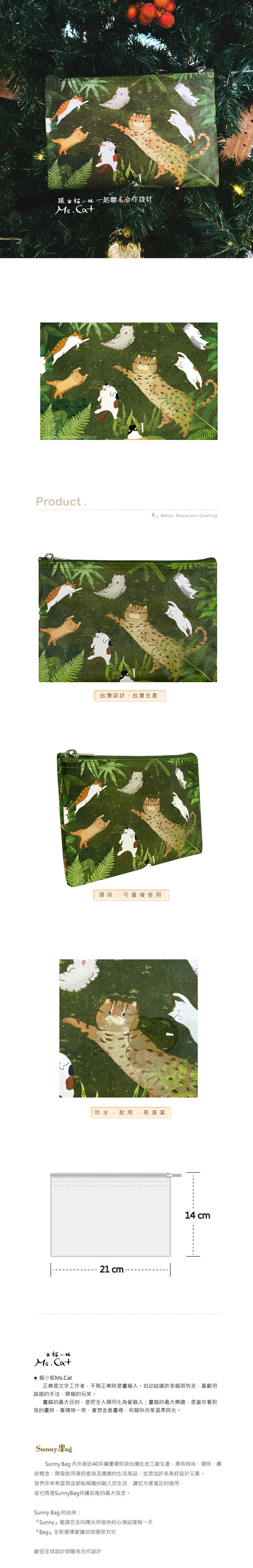 Sunny Bag x 貓小姐Ms.Cat 萬用收納袋(中)-石虎與貓的森林遊戲